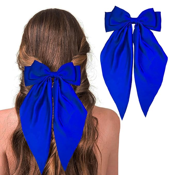 Hair Bows for Women Satin Silk Hair Bow Hair Ribbons Oversized Long Tail Bow Hair Clips Large Hair Ribbon Barrettes Metal Clips