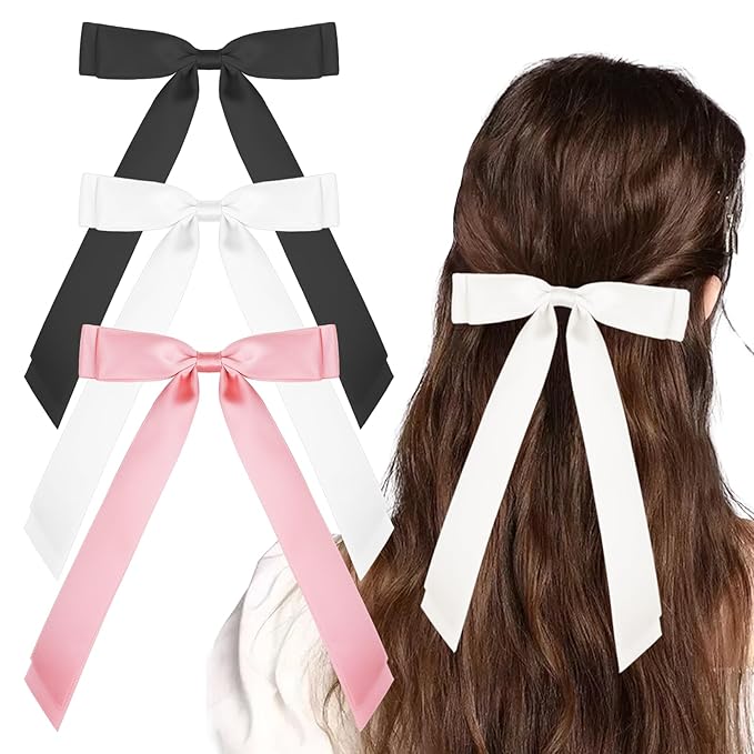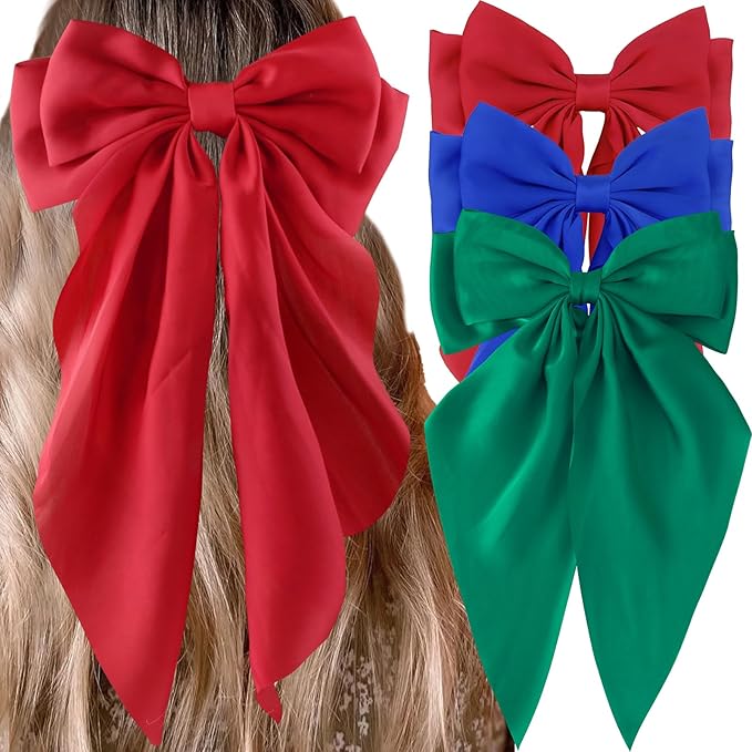 3Pcs Silky Satin Hair Bows for Women Hair Ribbons for Girls Big Bow Hair Ties Large Hair Barrettes for Girl French Cute Hair
