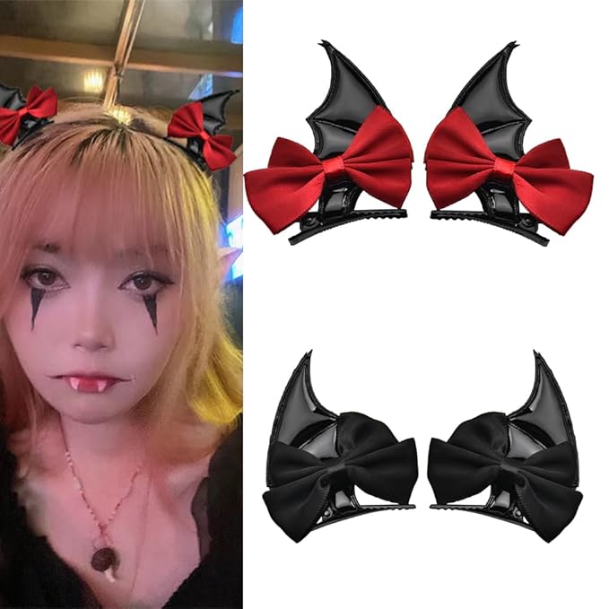 Bat Hair Bow Clips for Girls Women, 4pcs Halloween Bat Wings Gothic Cosplay Costume Hair Accessories for Halloween Party