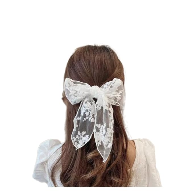 Large White Lace Hair Bow Clips for Women Cottagecore Hair Accessories Cute Tulle Bow Barrettes Women Ribbon Bows for Baby Girls