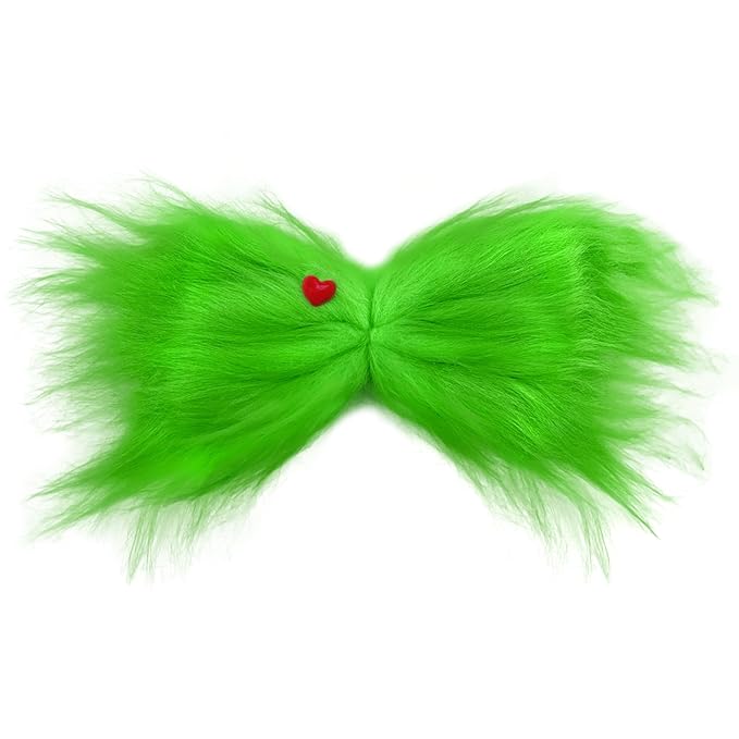 Large Green Furry Hair Bow Hair Clip with Red Heart Christmas Hair Bows Christmas Costume Accessories Women