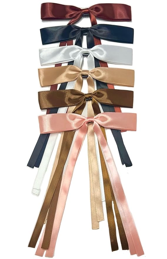 Hair Bows for Women: Cute Ribbon Barrettes with Long Tails, Tassel Bow Clips and BowKnot Hair Accessories, 6PCS Fashion Set