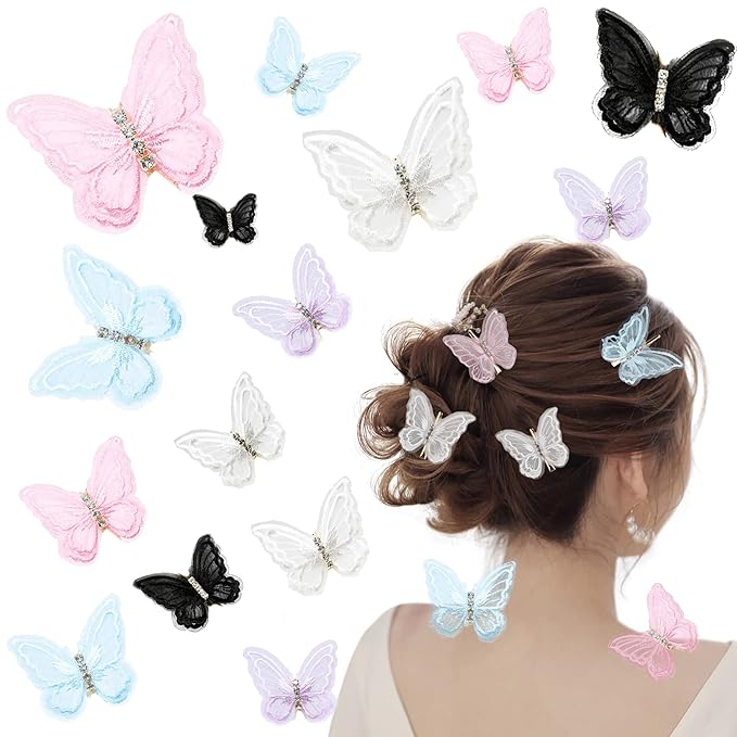 15 Pcs Small Butterfly Hair Clips 2.6" Lace Bows Hair Clips for Women Butterfly Embroidery Hair Pins for Girl's Hair Accessories
