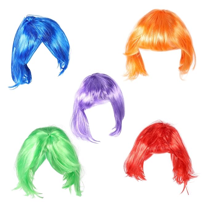 5pcs Bob Haircut Wig Party Synthetic Wigs Prom Props Yellow Bows for Hair Cosplay Wig Daily Party Costume Wigs Cosplay Wig
