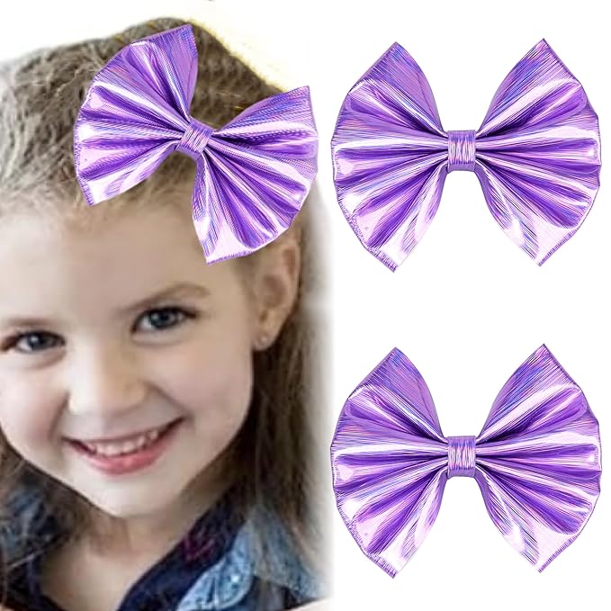 Purple hair bows for girls women,glitter purple ribbon hairbow clips barrettes hairpins for teens toddler halloween costume