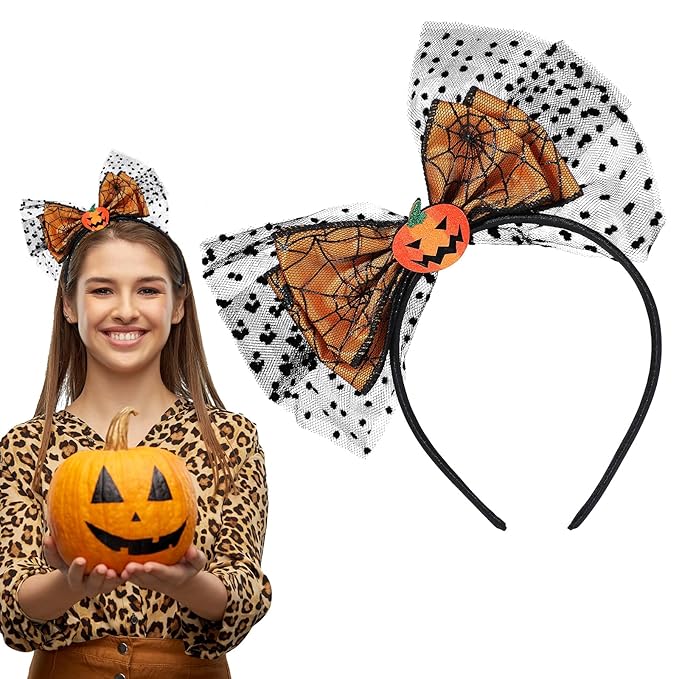 Halloween Headband Pumpkin Bow Hairband Gothic Lace Cobweb Cosplay Costume Hair Styling Accessories for Women Girls