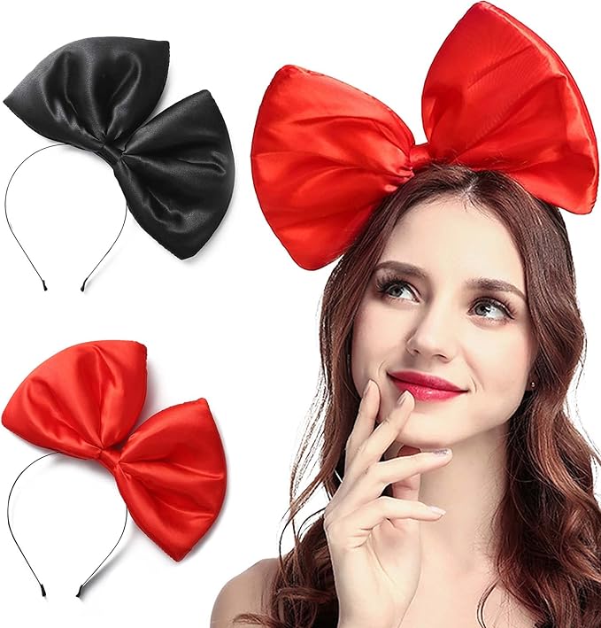 2Pack Red Bow Headband Big Bowknot Headband Halloween Headdress for Women and Girls Makeup Hair Band Hair Hoop Hair Accessories