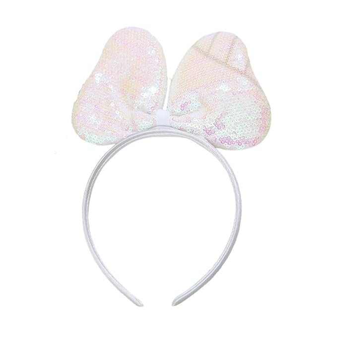 Big White Bow Headband for Women Sequins Glitter Cute Bowknot Headbands Hair Bows Headpieces for Women Halloween Cosplay