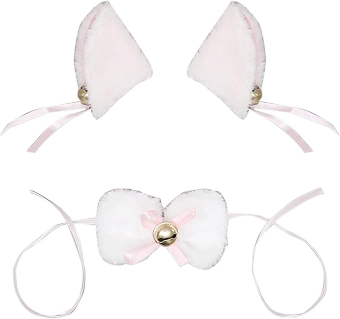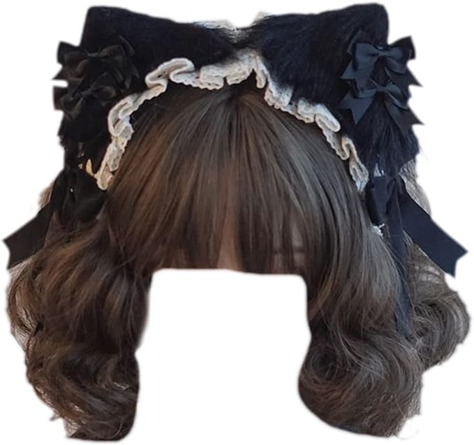 Girls Anime Maid Headband Plush Ears Ribbon-Bow Hairband Cosplay Headdress Women Show Headwear
