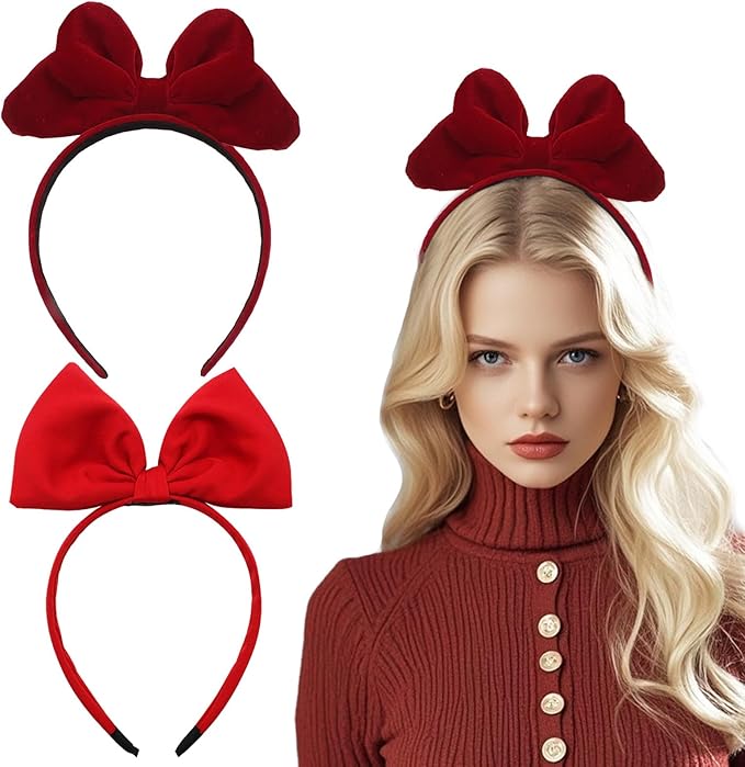 Headbands for Women 2Pcs Red Headband Bow headband for Women Gril Christmas Halloween Cosplay Hairband Hair Accessories