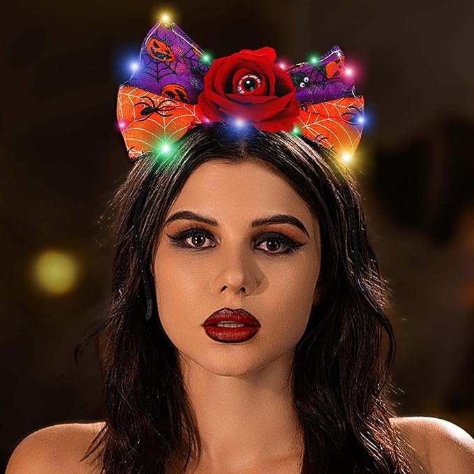 Festival Headbands Bow Hair Band Skull Light UP Cosplay Halloween Decorations Party Hair Accessories for Women
