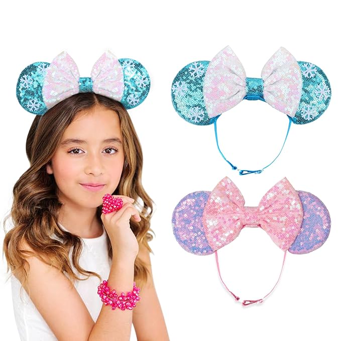 Minnie Ears Headbands Mouse Ears Sequin Bow Headbands Elastic Adjustable Headband Glitter Party Decoration Cosplay Costume for