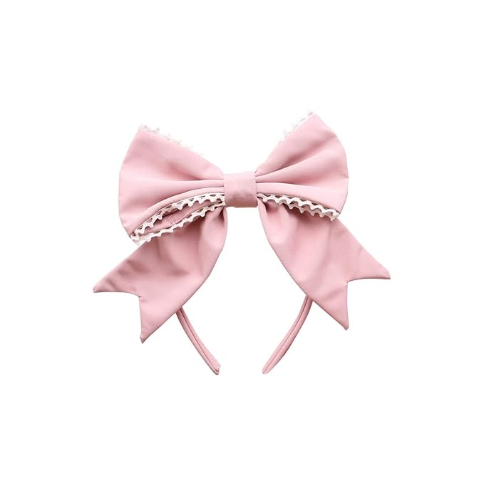 Bow Headbands, Lolita Hair Band Bow Tie Head Wrap Headdress Hair Accessories for Women Girls Party and Cosplay (LIGHT PINK)
