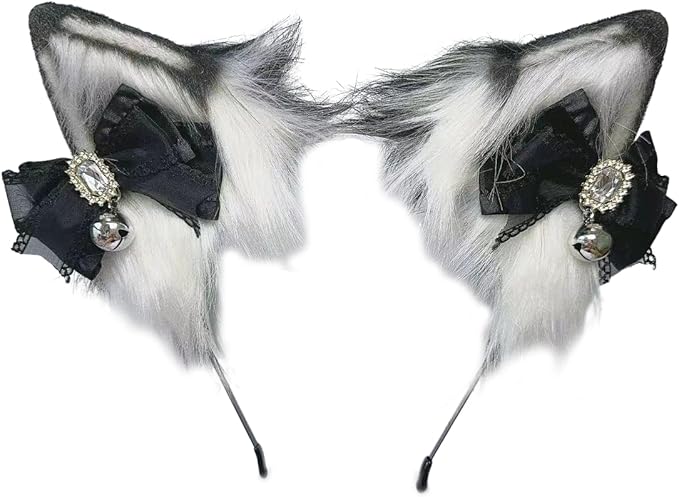 Headband With Bows Tie Animals Plush Furry Kitten Ears Hair Clips for Girl Cosplay Anime Hair Hoop