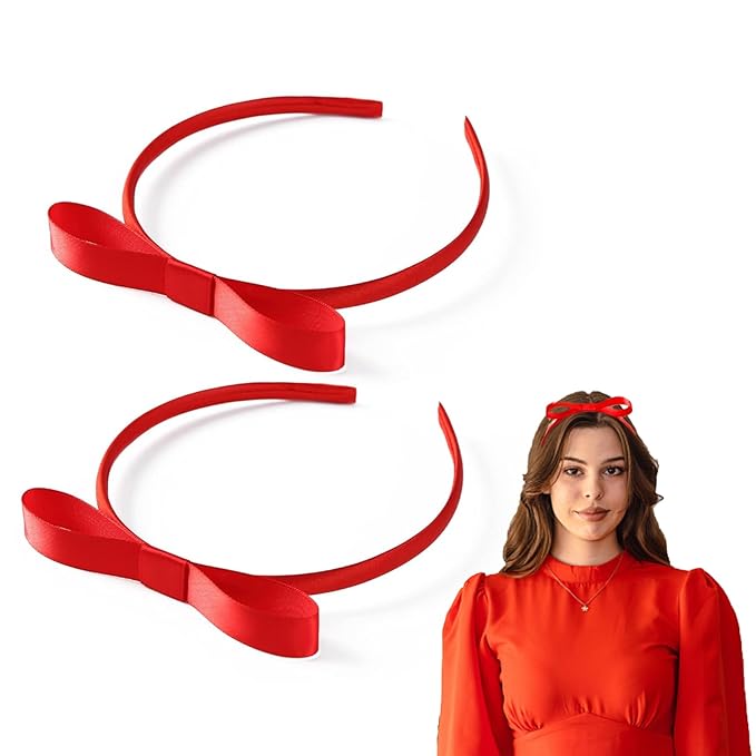 Red Bow Headbands for Girls Women - 2Pcs Red Hair Bow Headband Thin Bowknotted Hair Hoop Hair Band Bow Headbands Headdress Party